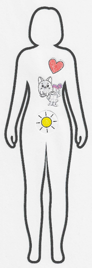 So kam ich mit ihnen (vor allem mit Klothilde) fürs erste klar und entschied mich sogar noch nachzuspüren, wo sie einen Platz in meinem Inneren hatten – in der Magengegend. Wie passend!