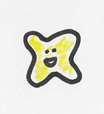Ein kleiner gelber, schwarz umrandeter Kerl, der fröhlich grinste.